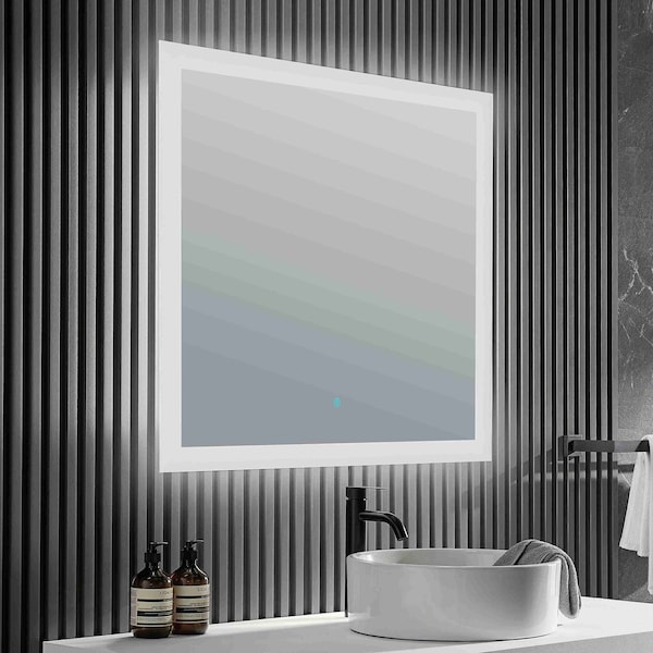 Mars 32 in. x 30 in. Frameless Rectangular LED Bathroom Mirror with Defogger in Silver