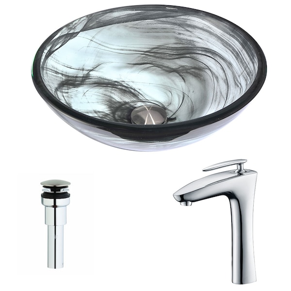 Mezzo Deco-Glass Vessel Sink, Slumber Wisp with Crown Faucet, Chrome