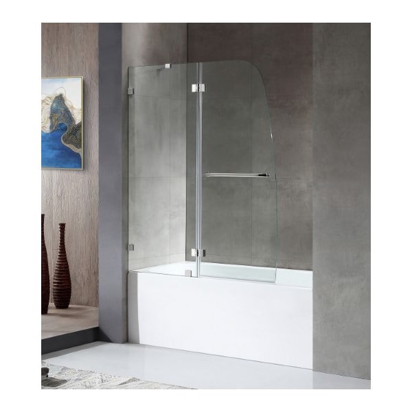 ANZZI’s frameless tub door fits to your existing tub, creating a stylish shower space that will stand out in your bathroom décor. The ANSI-certified, tempered Deco-Glass stays crystal-clear thanks to ANZZI's own Tsunami Guard shielding that repels water to prevent cloudy build-up. Rhino Alloy-certified stainless steel hardware is finished in beautiful Polished Chrome so it never loses its luster. The wide opening design makes it effortless to step in and out. Accented with a handy stainless steel towel bar.3/8 in. tempered Deco-Glass is ANSI-certified to be safe, strong, and durableThe ultramodern frameless swinging design gives your shower a premium look Double-sided Tsunami Guard shielding repels water to protect against cloudy build-up and keep glass crystal clear Stunning, vibrant stainless steel hardware is Rhino Alloy-certified and finished in beautiful Polished Chrome so it never loses its luster Rhino Alloy-certified stainless steel hinge hardware has 180° action for easy in and out access Overall dimensions: 48 in. W x 58 H in. Door size: 24 in. Fixed panel size: 24 in. Package includes everything you need — two (2) high forged hinges, one (1) stainless steel towel bar, one (1) tempered Deco-Glass door, one (1) tempered Deco-Glass panel Versatile symmetrical design allows for left or right installation — whatever fits your space! Protected by our Limited Get it fast — ships from warehouse within 24 hours of order processing Safe and convenient curbside delivery Professional installation highly recommended Also available in Brushed Nickel, model number: SD-AZ11-01BN