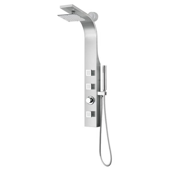 The ANZZI full body Sans shower panel features a modern laser cut brushed 304 stainless steel body with 3Acu-Stream body jets providing a relaxing yet powerful water stream to massage the body. The Heavy Rain shower head hangs overhead releasing a steady torrent of soothing water from above. And always positioned at the column's flank is the Euro-Grip hand held sprayer with free reign reach of up to 40 inches. And everything is controlled through 1 chrome diverter control.Your order will include one (1) ANZZI Sans full body shower panel, one (1) Heavy Rain shower head, three (3) Acu-Stream body jet, one (1) Euro-Grip free range hand sprayer, one (1) owner's manualThree (3) Acu-Stream body jets in polished chrome One (1) Shower control knob Swiveling crested shower head with Heavy Rain water pressure technology Free reign Euro-Grip handheld sprayer with 60 inch reach Crafted RHINO ALLOY certified 304 stainless steel body, and high grade ABS components DIY friendly retro-fit compatible installation Flexible reinforced stainless steel supply hoses with standard .5 inch connection Ships from warehouse within 24 hours of order processing To speak to a knowledgeable and dedicated ANZZI specialist simply call 1-844-44-ANZZI or visit us on the web at www.ANZZI.com