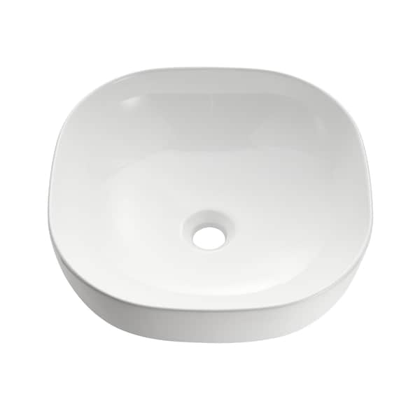 Siena Series 17 in. Ceramic Rounded Vessel Square Bathroom Sink Basin in White