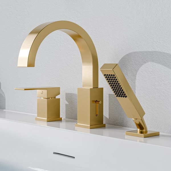 Nite Series Single-Handle Deck-Mount Roman Tub Faucet with Handheld Sprayer in Brushed Gold
