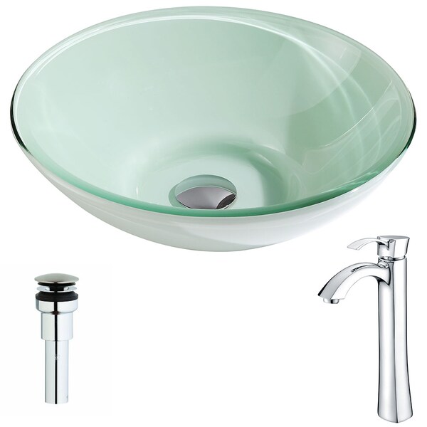 The ANZZI Sonata Series sink is a traditionally crafted round vessel sink adorned in a Lustrous Light Green Finish. Coupled with the ANZZI Harmony Vessel Sink Faucet, this combination provides pure elegance in any bathroom. Each ANZZI vessel sink and faucet is formed using RHINO ALLOY certified materials for strength and quality along with high tempered Deco-Glass. The result is a perfectly shaped dynamically captivating vessel and faucet centerpiece for any bathroom counter.Lustrous light green finishANZZI Harmony vessel sink faucet L-AZ095 RHINO ALLOY certified tempered deco-glass construction Scratch-tough and stain-resistant non-porous surface Easy-to-clean low maintenance Top Mount installation Deco-Glass thickness 1.75 in. Dimensions: 15.9 in. L x 15.9 in. W x 5.1 in. H Limited To speak to a knowledgeable and dedicated ANZZI specialist simply call 1-844-44-ANZZI or visit us on the web at www.ANZZI.com