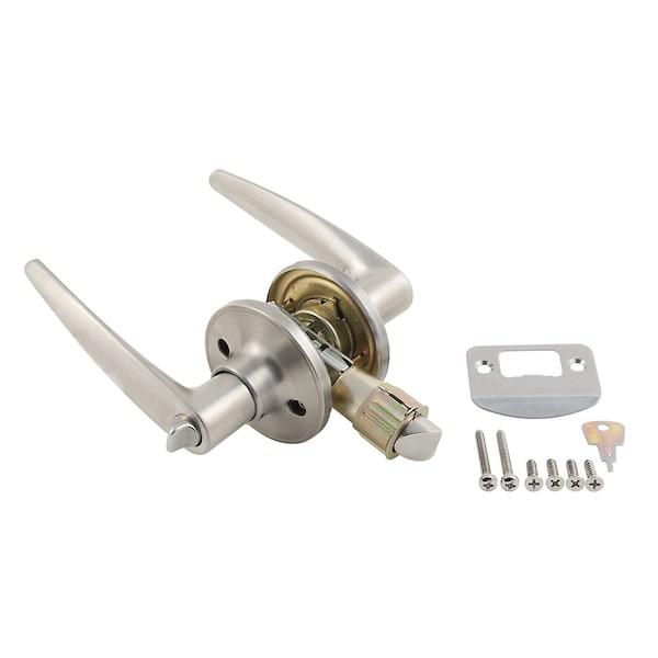 Lever Style Handle For RV Interior Privacy Door; Used As 2-3/8 Inch Or 2-3/4 Inch Backset; Silver; Stainless Steel; Fits Standard Drive-In Latches