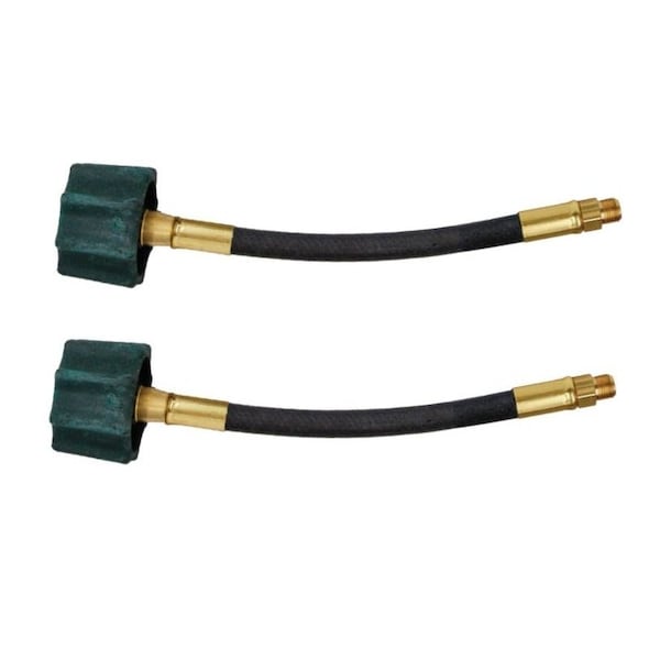 1/4 Inch Inside Diameter High Pressure Hose; 200,000 BTU Capacity; Female QCC (Quick Check Connector) Type 1 Connection x 1/4 Inch Male Inverted Flare; With Thermal Protection; 24 Inch Length; Thermoplastic Hose And Brass Ferrules; 2 Per Package