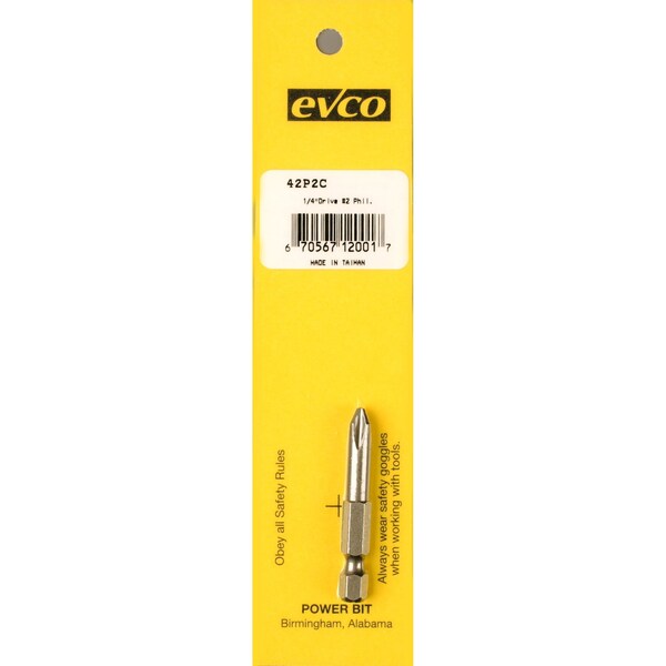 #2 Point Size/ 1/4 Inch x 2 Inch Bit Size; Phillips Power Bit; Carded