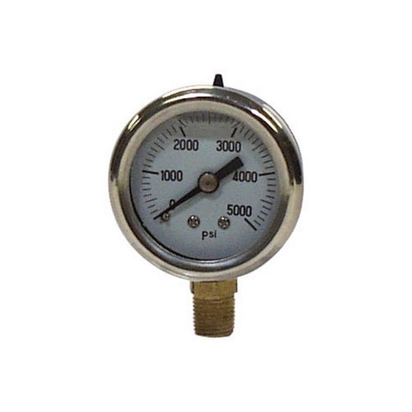 25, Stainless Steel, Glycerin Pressure Gauge, 5,000 PSI, 14 LM