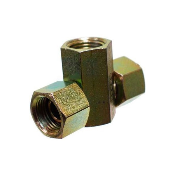 Apache hydraulic adapter 39035915, 1/2" female pipe x 1/2" female pipe swivel tee adapter for hydraulic size convertion or connection. features designed to simplify the connection of hydraulic components and to ensure proper hose routing for longer hose service life helps to eliminate purchasing & replacing expensive specialty hose couplings, as they are replaced throught a machine's lifetime meets jic/sae specifications for use in agricultural, construction & industrial applications construction steel