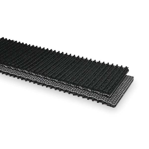 High-Grip Multi-Ply Conveyor Belt, PVC, 1/4 in Belt Thickness, 6 in Belt Width, 100 ft Overall Length, Black, Maximum Working Tension 150 piw, Alligator Lacing, Clipper Lacing, Staple-Style Alligator Lacing, Belt Ply 1, Top Surface Roughtop, Bottom Surface Friction