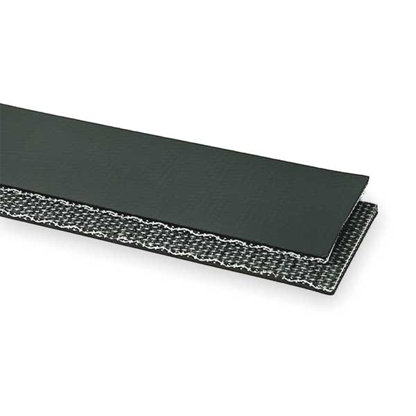 Low-Stretch Multi-Ply Conveyor Belt, PVC, 11/64 in Belt Thickness, 12 in Belt Width, 50 ft Overall Length, Black, Maximum Working Tension 150 piw, Alligator Lacing, Clipper Lacing, Staple-Style Alligator Lacing, Belt Ply 1, Top Surface Cover, Bottom Surface Brushed