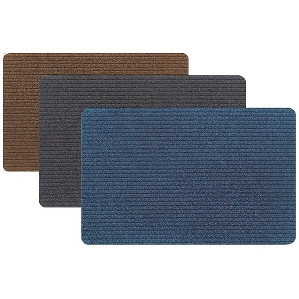 Ribbed needle punch surface scrapes shoes clean. Stain-resistant carpet traps dirt and absorbs water. Slip-resistant backing made from recycled crumb rubber. 20 in x 30 in. Colors include 6 charcoals, 4 walnut and 2 blue.