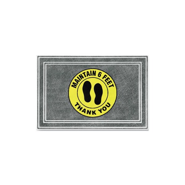 , MESSAGE FLOOR MATS, 24 X 36, CHARCOAL/YELLOW, inMAINTAIN 6 FEET THANK YOUin