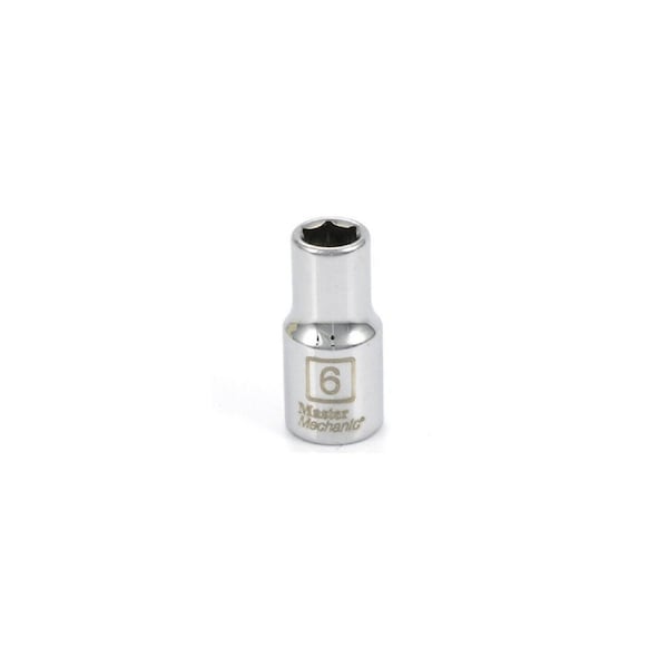 Master Mechanic, 1/4in Drive, 6 mm, 6 Point, Shallow Socket, Chrome Vanadium Steel, Surface Drive, Design Contacts The Flat Surfaces On Fastener Instead Of Corners, Reduces Slippage, Reduces Rounding Of Fastener & Will Still Grab On Slightly Rounded Fasteners.