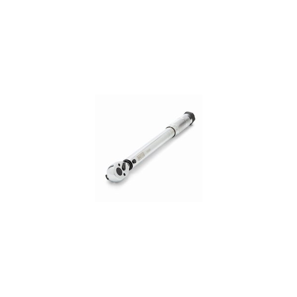 Master Mechanic, 3/8in DR MicroMeter Torque Wrenches. Torque range of 5-80 ft. lbs. Factory calibrated to +/- 4% clockwise accuracy in the upper 80% of torque range. Twist collar locks torque setting in place. Quick release button on head of ratchet allows for easy release of sockets and accessories. Alloy Steel construction. Chamfered square drive lead-in helps provide fast and easy placement of sockets and accessories onto drive