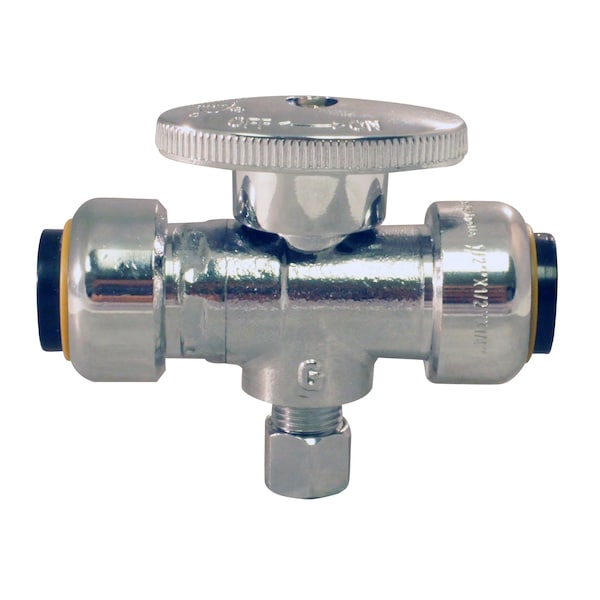 1/2 in. x 1/2 in. Push-To-Connect x 1/4 O.D. Compression Chromed Brass Compression Stop Tee Valve