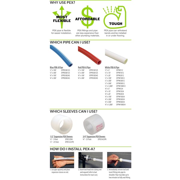 The Apollo ExpansionPEX is simple to install. Apollo ExpansionPEX barb fittings are a key component to one of the most economical potable water piping systems. Also capable of integration into hydronic heating systems, Apollo ExpansionPEX couplings must be secured into place Apollo ExpansionPEX sleeves or comparable expansion-type sleeve or ring (all sold separately). The Apollo ExpansionPEX system is a comprehensive piping system comprised of lead free brass fittings, poly alloy fittings, manifolds, valves, fasteners, tools and tubing designed for implementation in water delivery systems, simple or complex. A cold-expansion tool (sold separately) is required for installation.