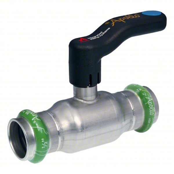 Ball Valve, Body Material Stainless Steel, For Media Compressed Air, Cooling, Heating, Water, Valve Construction One-Piece, Nominal Valve Size 1 in, Valve Body Style Straight, Maximum Pressure - Operating 300 psi, Maximum Pressure - Steam 20 psi, Ball Material Stainless Steel, Ball Port Style Full Port, Handle Type Lever, Connection Size - Side 1 1 in, Seal Material EPDM, Seat Material PTFE, Stem Material Stainless Steel, Connection Size - Side 2 1 in, Connection Type - Side 1 Press