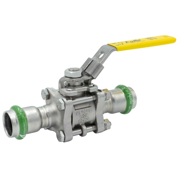 Ball Valve, Body Material Stainless Steel, For Media Compressed Air, Cooling, Heating, Water, Valve Construction Three-Piece, Nominal Valve Size 1/2 in, Valve Body Style Straight, Maximum Pressure - Operating 500 psi, Maximum Pressure - Steam 20 psi, Ball Material Stainless Steel, Ball Port Style Full Port, Handle Type Lever, Connection Size - Side 1 1/2 in, Seal Material EPDM, Seat Material RPTFE, Stem Material Stainless Steel, Connection Size - Side 2 1/2 in, Connection Type - Side 1 Press