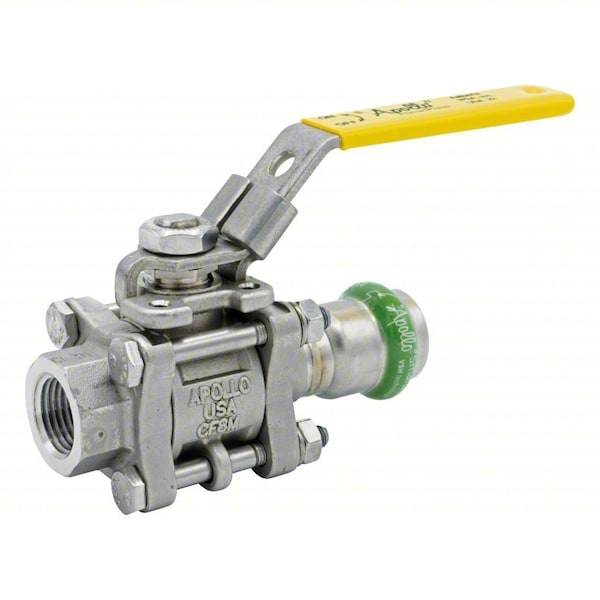 Ball Valve, Body Material Stainless Steel, For Media Compressed Air, Cooling, Heating, Water, Valve Construction Three-Piece, Nominal Valve Size 1 in, Valve Body Style Straight, Maximum Pressure - Operating 500 psi, Maximum Pressure - Steam 20 psi, Ball Material Stainless Steel, Ball Port Style Full Port, Handle Type Lever, Connection Size - Side 1 1 in, Seal Material EPDM, Seat Material RPTFE, Stem Material Stainless Steel, Connection Size - Side 2 1 in, Connection Type - Side 1 Press