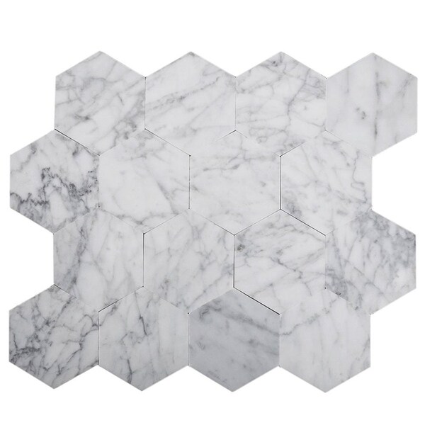 9x10 Carrara White Marble Hexagon Peel And Stick Marble Tile 6.41 sq.ft/case, 10PK