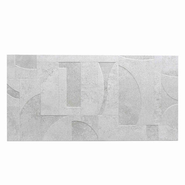 Imprint 24x48 in. Stone White Matte 32 Mid-Century Geometry Large Wall Tile (15.5 sq ft/case, 2-Pack). Bring a modern, architectural sensibility to interior walls with its soft concrete look and subtle geometric layout. Crafted in Color Body Porcelain, it carries the tone of the surface through the tile body, offering richer depth, long-term color stability, and a refined matte finish. The pale stone-white base and gentle grey accents form a quiet mural effect of intersecting arcs and linear cuts, adding texture and structure without overwhelming the room. Ideal for feature walls in living spaces, kitchens, and baths, it pairs beautifully with natural woods, brushed metals, and minimalist decor. Its stone-like surface and contemporary geometry create a clean, gallery-style backdrop that elevates everyday spaces with thoughtful design.
