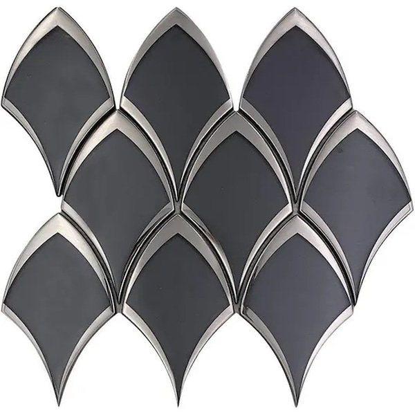 Mirari 10x12 in. Gray Glossy Glass Fish-shaped Mosaic Wall Tile (4.25 sq ft/case, 5-Pack). This gray fan-shaped glass tile brings movement and elegance to any wall it touches. Its curved form catches light in shifting tones of charcoal and silver, creating a layered effect that feels both sculptural and refined. The glossy surface amplifies reflection, giving the pattern a fluid look that changes throughout the day. Designed for bathroom walls, shower surrounds, or feature panels, it blends artistic flair with the practicality of glass; easy to clean, moisture-resistant, and naturally luminous. Use it to add visual texture behind a vanity mirror or as a statement accent above a freestanding tub. Because it withstands heat up to 150 deg F, it also works beautifully as a fireplace border or kitchen backsplash. The subtle contrast between gray and white makes it versatile across modern, transitional, and spa-inspired interiors. Pair it with matte black, brushed steel, or soft beige finishes for a space that feels balanced, calm, and unmistakably upscale.