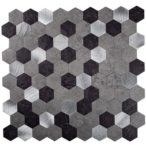 Sample, 1.25" Silver/Grey/Black Hexagon 11.25"X11.25" Peel&Stick Tile