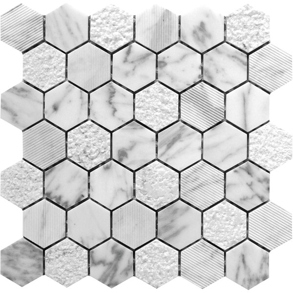 Sample, Harbor White 11.8"X12" Textured Carrara Hexagon Mrbl Msic Tile