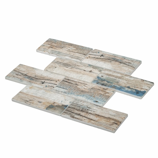 Sample of Blue And Beige Subway 11.5"x11.5" Recycled Glass Tile