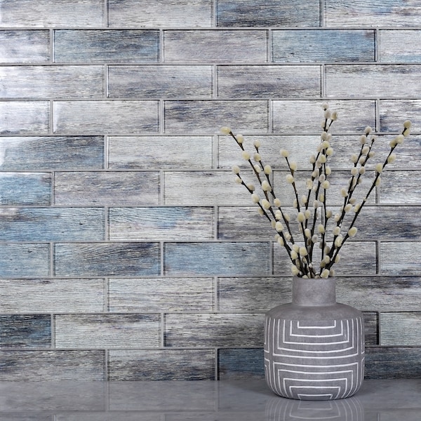 Sample of Blue Wood Look Glass 11.8"x11.8" Subway Tile