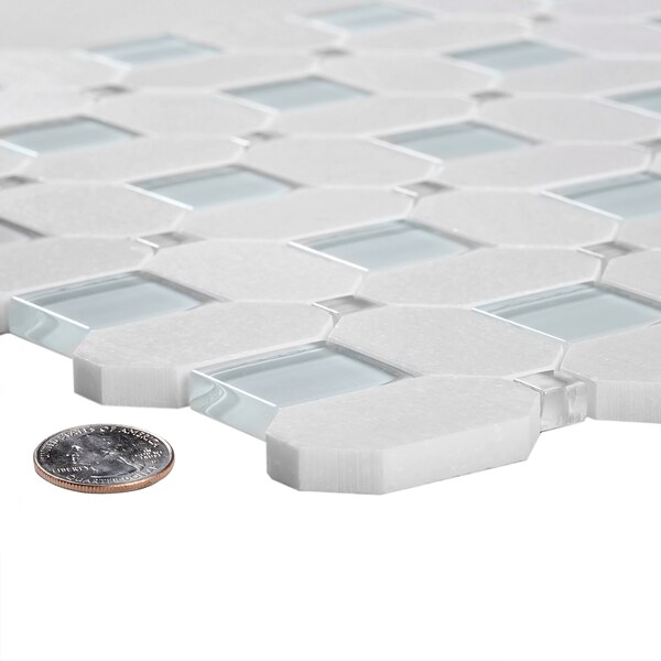Sample, Thassos Octagon&Grey Dot 12.2"X12.2" Mrbl&Glass Mosaic Tile