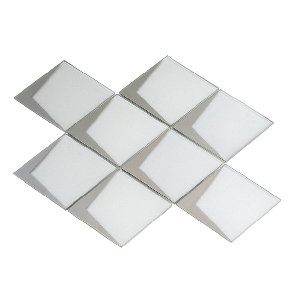 Bring the breezy elegance of the Mediterranean coast into your home with this luminous white glass mosaic tile. Each sheet features 3.75-inch diamond-shaped chips accented by a delicate metallic silver edge, adding a touch of glamour to modern interiors. The soft matte finish diffuses light beautifully, creating a relaxed yet refined vibe - perfect for brightening up kitchen backsplashes, shower walls, bathroom feature panels, or powder rooms. Designed for style and durability, this mosaic is mesh-mounted for easy installation and is suitable for both walls and light-traffic floors. Elevate coastal, contemporary, or transitional spaces with this versatile tile - where luminous style meets effortless maintenance.