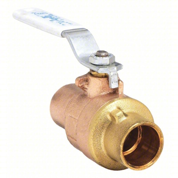 Manual Two-Way Ball Valve, Body Material Brass, Bronze, For Media Water, Valve Construction Two-Piece, Nominal Valve Size 1 1/2 in, Valve Body Style Straight, 3-A Standard Compliance Not Rated, Average Surface Roughness (Ra) Not Applicable, Maximum Pressure - Operating 600 psi, Maximum Pressure - Steam 150 psi, Maximum Pressure - Combustible Gas Not Rated, Vacuum Service Rating 29 in Hg, Ball Material Stainless Steel, Ball Port Style Full Port, Handle - Locking Non-Locking, Handle Type Lever