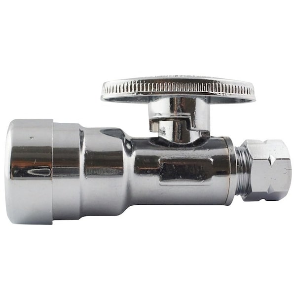 Apollo Valves Stop Valve, 12 x 38 in Connection, PushFit x Compression Connection, Temperature Rating 180 deg F, Body Material Brass, Chrome
