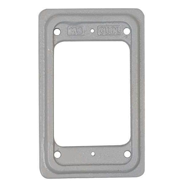 Cast Box Extension, Extension, Horizontal or Vertical Mounting Orientation, Number of Gangs 1, Material of Construction Malleable Iron, Color Gray, Height (In.) 4.56, Width (In.) 2.81, Depth (In.) 1, Standards UL 514A, C22.2 No. 18.1, Includes Stainless Steel Screws