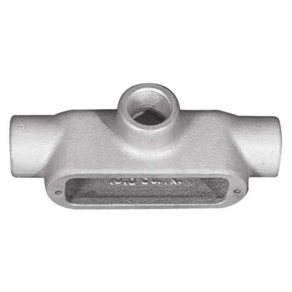 Conduit Outlet Body, Overall Height 4 13/16 in, Overall Length 15 5/8 in, Trade Size 3 in, Compatible Conduit Trade Size 3 in, Hub Size 3 in, Iron, Compatible Conduit Type IMC, RMC, Back Type Flat, Body Capacity 217 cu in, Body Style T, Body Type Conduit Outlet Body, Color Gray, Connection Orientation Multi-Angle, Connection Type Threaded, Finish Triple Coat Epoxy Coating, For Use With IMC, RMC, Hazardous Location No, Hub Style Threaded, Number of Hubs 3, Shape T
