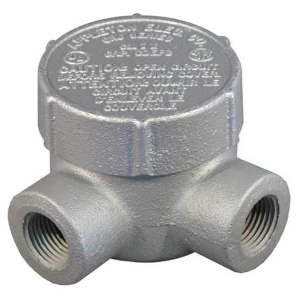 Conduit Outlet Body, Overall Width 2 7/16 in, Overall Height 2 7/8 in, Overall Length 3 7/8 in, Trade Size 1/2 in, Compatible Conduit Trade Size 1/2 in, Hub Size 1/2 in, Compatible Cover GRJK-S, GRJK-SC, Iron, GRJ, Compatible Conduit Type Threaded IMC, Indoor/Outdoor Usage Indoor/Outdoor, Back Type Round, Body Capacity 7.3 cu in, Body Style L, Body Type Conduit Outlet Body, Color Gray, Connection Orientation 90 Degrees , Connection Type Threaded, Cover Included Yes
