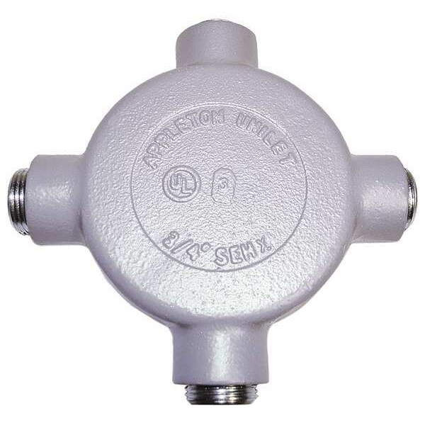 Conduit Outlet Body, Overall Width 1 7/8 in, Overall Height 4 3/4 in, Overall Length 3 1/2 in, Trade Size 1/2 in, Compatible Conduit Trade Size 1/2 in, Hub Size 1/2 in, Iron, SEH, Compatible Conduit Type IMC, Threaded RMC, Back Type Round, Body Capacity 18 cu in, Body Style X, Body Type Conduit Outlet Body, Color Gray, Connection Orientation Multi-Angle, Connection Type Threaded, Finish Triple Coat Epoxy Coating, For Use With IMC, Threaded RMC, Hazardous Location No, Hub Style Threaded