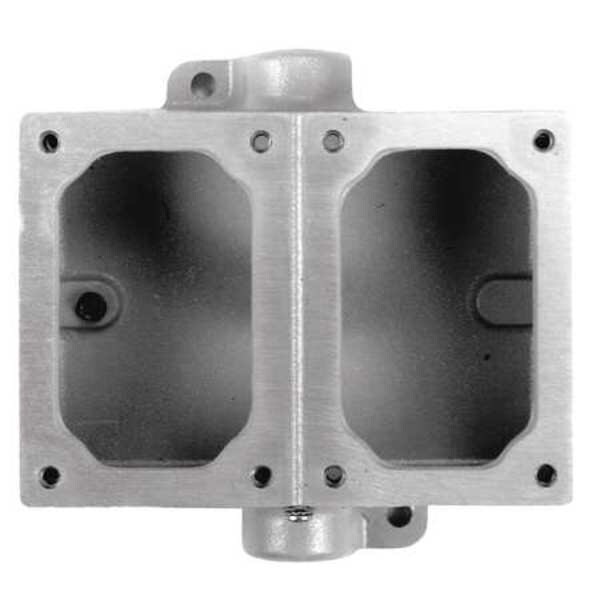 Mounting Body, Box Type 2-Gang, Number of Gangs 2, Bracket Type Lugs, Capacity Not Applicable, Material Aluminum, Clamp Type Clamp Not Included, Color Gray, Standards C22.2 No. 14, CSA, cULus Listed E10449, cULus Listed E81751, UL 1203, UL 508, UL 698