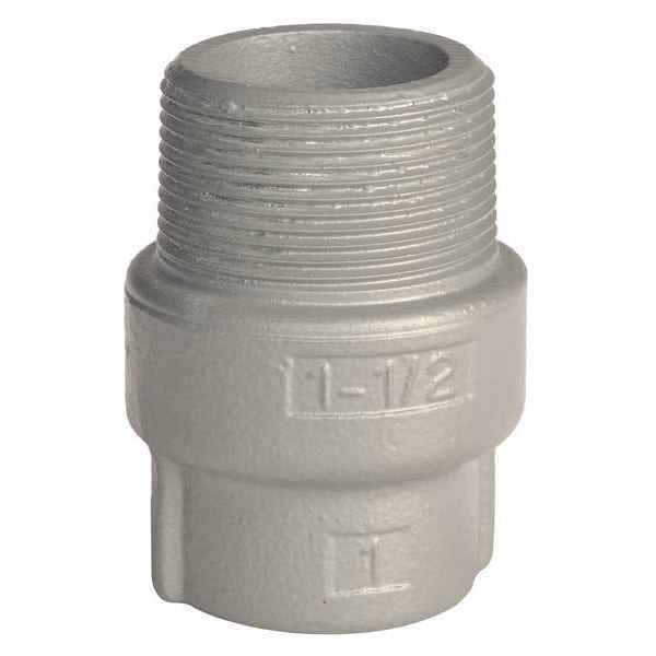 Sealing Hubs - Vertical, Trade Size 1/2 in, 1 in, Ends - Hazardous Fittings 1/2 in FNPT x 1 in MNPT, Overall Length 2 1/4 in, Iron, Hazardous Location Rating Class I, Division 1 and 2, Groups A, B, C, D, Class II, Division 1 and 2, Groups E, F, G, Class III, Thread Gender Male to Female, Used to Seal Vertical Conduit Risers At Switch Gear and Motor Control Centers, Silver, Compatible Conduit Trade Size 1 in, 1/2 in, Compatible Conduit Type IMC, RMC, Conduit Orientation Vertical