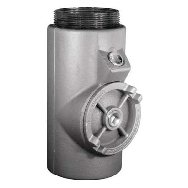 Sealing Fitting - Vertical and Horizontal, Trade Size 5 in, Ends - Hazardous Fittings 5 in FNPT x 5 in MNPT, Overall Length 10 13/16 in, Iron, Hazardous Location Rating Class III, Class I, Division 1 and 2, Groups B, C, D, Class II, Groups E, F, G, Thread Gender Male to Female, Prevent Passage of Gases, Vapors or Flames From One Portion of Conduit Systems to Another, Silver, Compatible Conduit Trade Size 5 in, Compatible Conduit Type IMC, RMC, Conduit Orientation Horizontal, Vertical