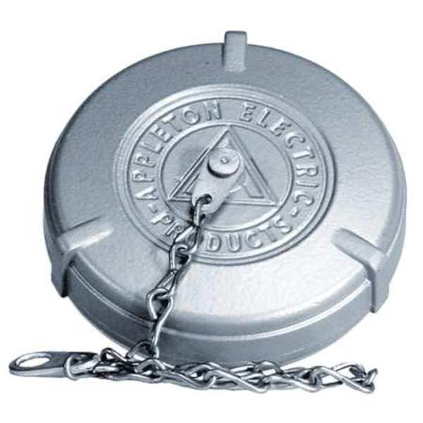 Receptacle Threaded Cover, Compatible Device Wire Number 2, 3, 4, For Use With EBR, EBRH, JBR, MD2SR, FSQC, ID2SR, or DBR Hazardous Interlocked Receptacles, IP Rating Not Rated, Material Copper-Free Aluminum, NEMA Enclosure Rating 3, 3R, 4, 4X, Color Silver, Includes Gasket and Chain, Resistance Properties Hydrocarbon Resistant, Standards NEC/CEC, Compatible with Series Powertite(TM), Product Type Threaded Cover