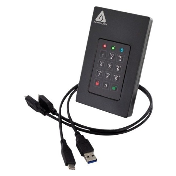 The Apricorn Aegis Fortress L3 16TB SSD is a solid state drive with a height of 1", width of 3", and depth of 4.8".