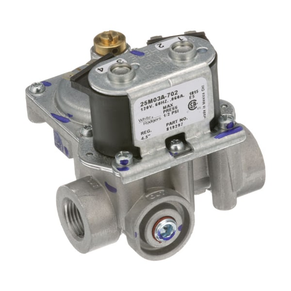 Dual Gas Solenoid Valve, [ (Qty 3) 3/8" Fpt Gas In/Out ] ;[ Nat ] [ 120V ] [ 3" X 3" X 3" ] [ Brand White Rodgers ];[ Vulcan Hart # 819297 ] ;(Note: For Lp. Use # 54-1076 Valve.);Vulcan Grill Series: 900A, Gdc, Mgg-A.;Wyott Grill Series: Gg.