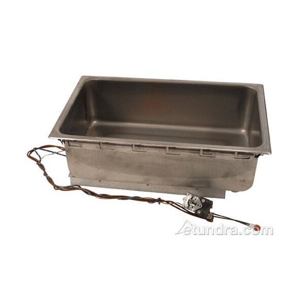 Fits 12 3/8" x 20 3/8" hole; 12" x 20" top opening to fit standard pans; 1200 watts; Stocked as 120V (please call if requesting 208/240V); Includes thermostat and drain; Designed for wet & dry operation; Stainless steel water pan; Fits most steam table cutouts; NSF certified