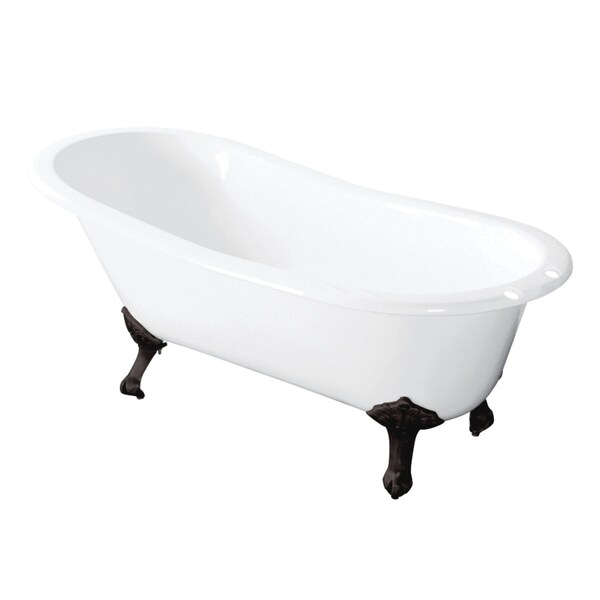 Surround yourself with the perfumed aroma of your favorite candle, grab your favorite piece of literature, and soak all of the stresses of the day away with the all-encompassing embrace of one of Kingston Brass' finest products, the clawfoot tub. Since the late 19th century, the claw foot tub has stood prominent among bathroom fixtures for its outstanding grandeur. The Aqua Eden 57-inch cast iron slipper clawfoot tub with 7-inch faucet drillings will wholly beautify your home for years to come thanks to its durable and heavy cast iron construction. Elegantly crafted clawfoot tub feet are included to further elevate your home's traditional eminence. Aside from its feet, this bathtub is enameled in glossy white for a classic look, exceptional durability, and easy care and maintenance for years to come.