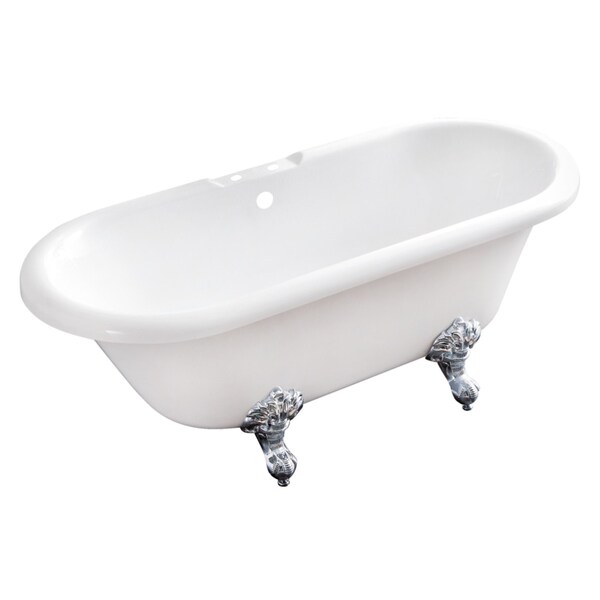 Surround yourself with the perfumed aroma of your favorite candle, grab your favorite piece of literature, and soak all of the stresses of the day away with the all-encompassing embrace of one of Kingston Brass' finest products, the clawfoot tub. Since the late 19th century, the claw foot tub has stood prominent among bathroom fixtures for its outstanding grandeur. The Aqua Eden 67-inch acrylic clawfoot tub (no faucet drillings) will wholly beautify your home for years to come thanks to its durable and easily repairable acrylic construction. Elegantly crafted clawfoot tub feet are included to further elevate your home's traditional eminence. Aside from its feet, this bathtub is finished inside and out in a brilliant, high-gloss white that ensures crisp aesthetics and easy care now and well in the future.