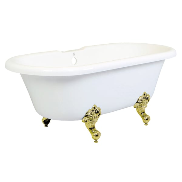 Surround yourself with the perfumed aroma of your favorite candle, grab your favorite piece of literature, and soak all of the stresses of the day away with the all-encompassing embrace of one of Kingston Brass' finest products, the clawfoot tub. Since the late 19th century, the claw foot tub has stood prominent among bathroom fixtures for its outstanding grandeur. The Aqua Eden 67-inch acrylic clawfoot tub with 7-inch faucet drillings will wholly beautify your home for years to come thanks to its durable and easily repairable acrylic construction. Elegantly crafted clawfoot tub feet are included to further elevate your home's traditional eminence. Aside from its feet, this bathtub is finished inside and out in a brilliant, high-gloss white that ensures crisp aesthetics and easy care now and well in the future.