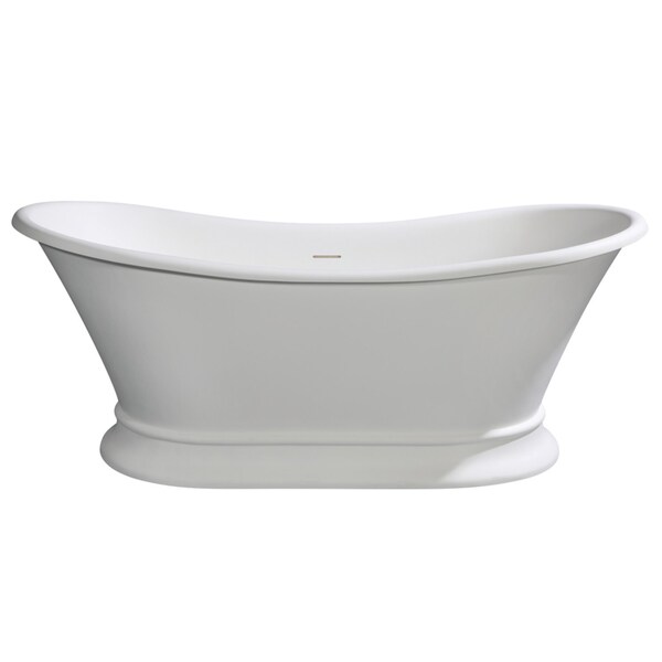 Elevate your home's contemporary decorum, while you effortlessly recline in the cozy embrace of a Kingston Brass freestanding bathtub. Highly acclaimed for its clean and contemporary yet minimalist shape, this tub will be made the focal point in many bathrooms. The Aqua Eden 68-inch double slipper solid surface freestanding tub with drain will wholly beautify your home for years to come thanks to its durable and scratch resistant solid surface white stone construction. This bathtub's exterior is finished in an elegant matte white to bring high design into your space, and its interior and inner rim are polished to a glossy finish to make cleaning and care easier.