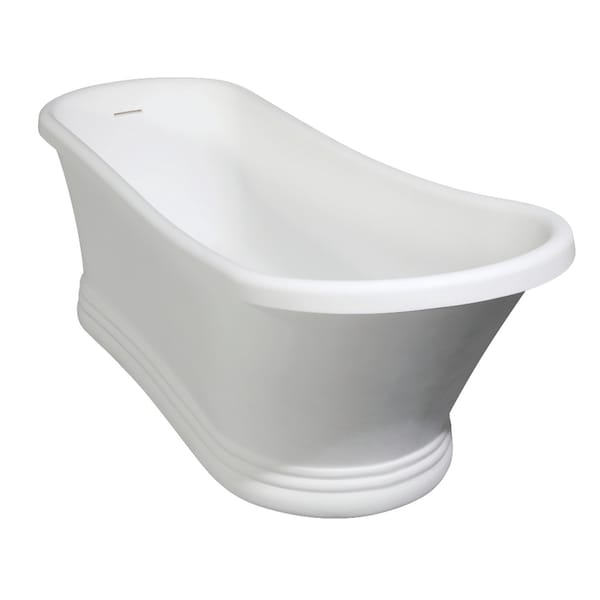 Incorporate the regal beauty of a Kingston Brass pedestal tub for years and years of luxury baths suitable for royalty. Pedestal tubs are generally categorized as the contemporary descendant of the classic clawfoot tub. However, unlike the clawfoot tub, pedestal tubs rely on a solid base ring bordering the bottom perimeter to support and raise it off the floor, giving it a one-of-a-kind personality. The Aqua Eden Arcticstone 68-inch slipper solid surface pedestal tub with drain will wholly beautify your home for years to come thanks to its durable and scratch resistant solid surface white stone construction. This bathtub's exterior is finished in an elegant matte white to bring high design into your space, and its interior and inner rim are polished to a glossy finish to make cleaning and care easier.